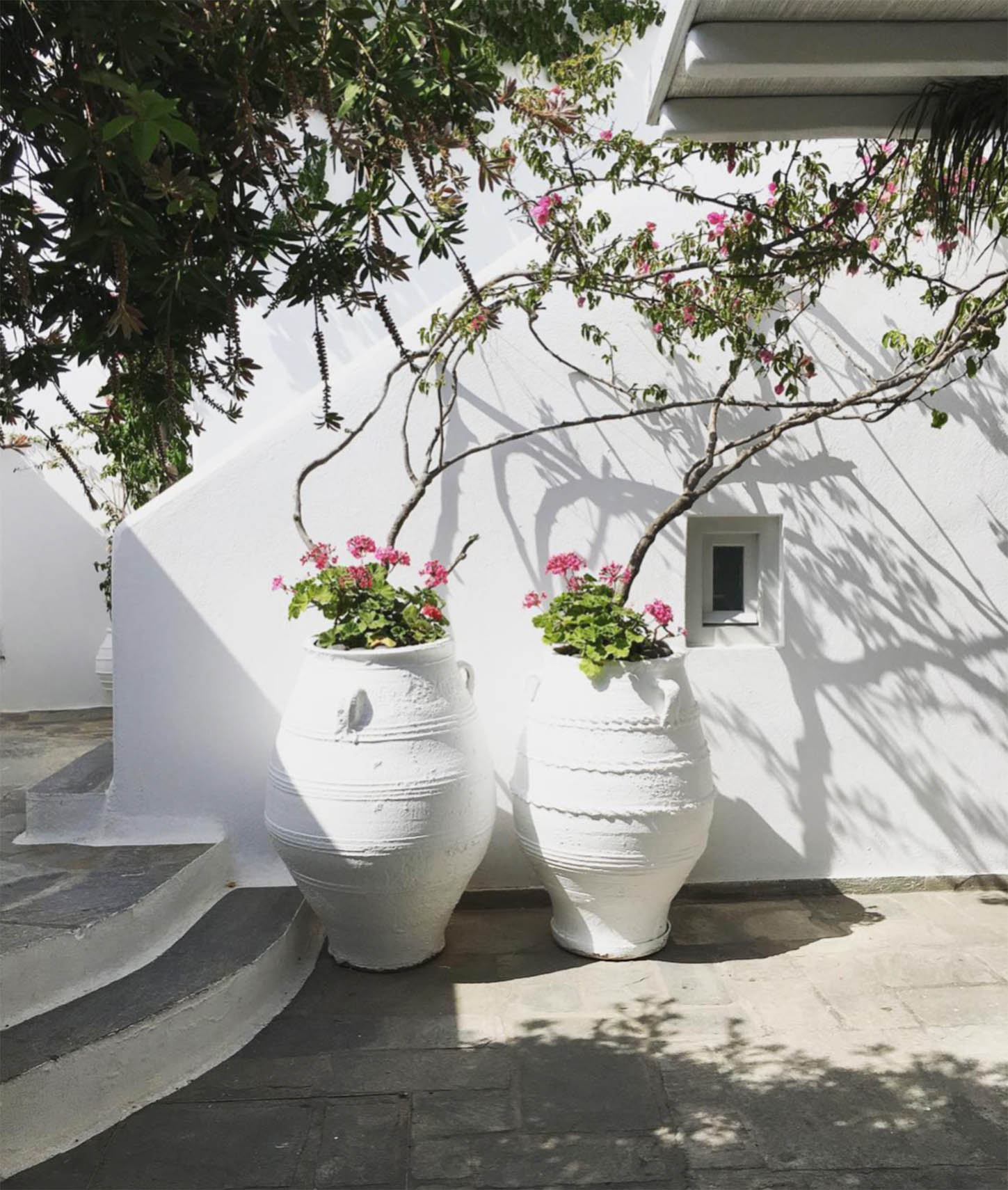 Framed by a verdant garden, the hotel is a sun-bleached labyrinth of 44 luxury rooms and suites, bougainvillea-laden balconies, stone-paved paths, and hideaways that inspire a deep sense of relaxation. The light-filled interiors are designed to combine simplicity, luxury, and timeless elegance. Accents of hand-sculpted wood are added to the all-white Cycladic plaster and marble spaces, creating Belvedere’s unique look on the island.