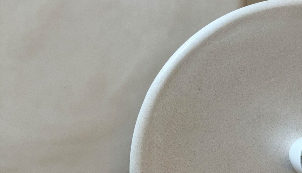 It was an intense process of exploratory trials, where we experimented with different mixes and colors. We matched the color of the beach and created multiple textures for the room furniture. Dining tables, bedside tables, and lamps showcase the tactile sand textures, adjusting from smooth to coarse.